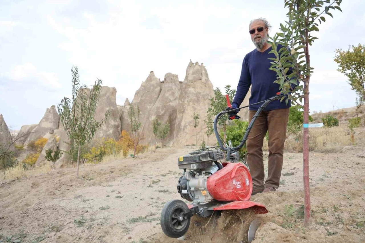 Balon turlarının her sabah gökyüzünü renklendirdiği bölgede, Peribacaları’nın arasında dikilen ağaçlar hem doğaya hem de görsel güzelliğe katkı sağlıyor. Lütfü Höke ve eşi, diktikleri fidanların bakımını da özenle yapıyor.