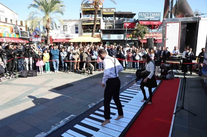 23. Antalya Piyano Festivali’nin şehir etkinlikleri kapsamında hafta sonu gerçekleşen programda ’Il Grande Piano’ grubu, ilk olarak Antalya Saat Kulesi önünde müzik tutkunları ile buluştu. Yer üzerine kurulu, tuşları yaklaşık bir metre uzunluğunda devasa büyüklükteki piyanoyu ayaklarıyla çalan grup üyeleri müzikseverlere muhteşem bir gösteri sergiledi. Alanya’da muhteşem gösteri