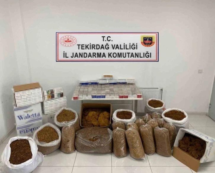 Çerkezköy ilçesi Gültepe Mahallesi’nde düzenlenen operasyonda jandarma ekipleri, 240 kilogram bandrolsüz açık tütün, 40 bin 150 adet içleri tütün ile doldurulmuş makaron ve 22 bin 500 adet bandrolsüz içleri boş makaron tespit etti. Kaçak tütün ve makaronların piyasaya sürülmeden önce ele geçirilmesi, jandarma ekiplerinin başarılı çalışmaları sonucunda gerçekleşti. Olayla ilgili olarak işletme sahibi Ö.K. hakkında yasal işlem başlatıldı.