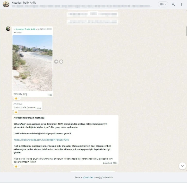 Aydın’ın Kuşadası ilçesinde, trafik ve asayiş büro ekipleri tarafından kent genelinde yapılan denetimlerden kaçmak isteyen bazı kişilerin ’whatsapp’ grubu kurduğu ortaya çıktı. Uygulama noktalarından çekilen çeşitli fotoğraflar ile bilgilerin anlık olarak paylaşıldığı gruba üye olanlar hakkında soruşturma başlatılacağı bildirildi.