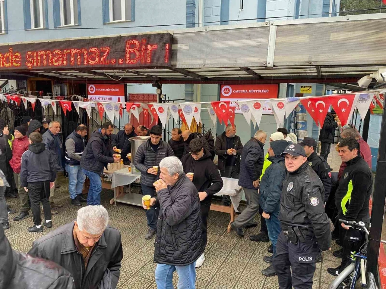 Çaycuma Seka Site Camii’nde Cuma namazı çıkışında cemaat ve öğrenciler için düzenlenen ikramlar, toplumsal dayanışma ve vefa duygusunu pekiştirmeye devam ediyor.