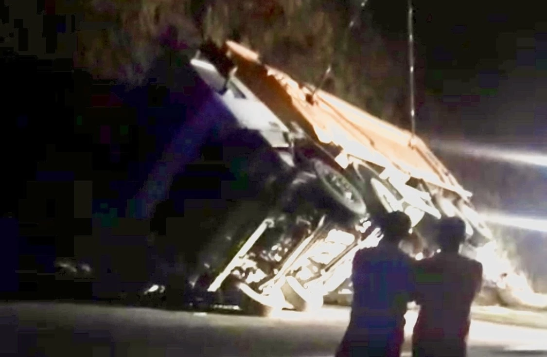 Pütürge ilçesi Kubbe Dağı mevkiinde yol çalışması yapan kamyonun devrilmesi sonucu sürücü yaralandı.