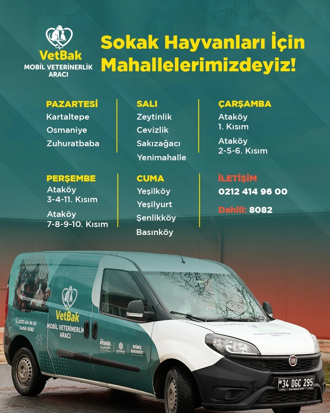 Bakırköy Belediyesinin hayata geçirdiği mobil veterinerlik aracı, 2025 yılının başından beri onlarca sokak hayvanının hayatına dokundu. Belediye bünyesindeki veteriner hekimler, "VetBak" aracı ile periyodik olarak ilçe genelindeki mahallelerde konuşlanarak hayvanların kontrol ve tedavilerini sağlıyor.
