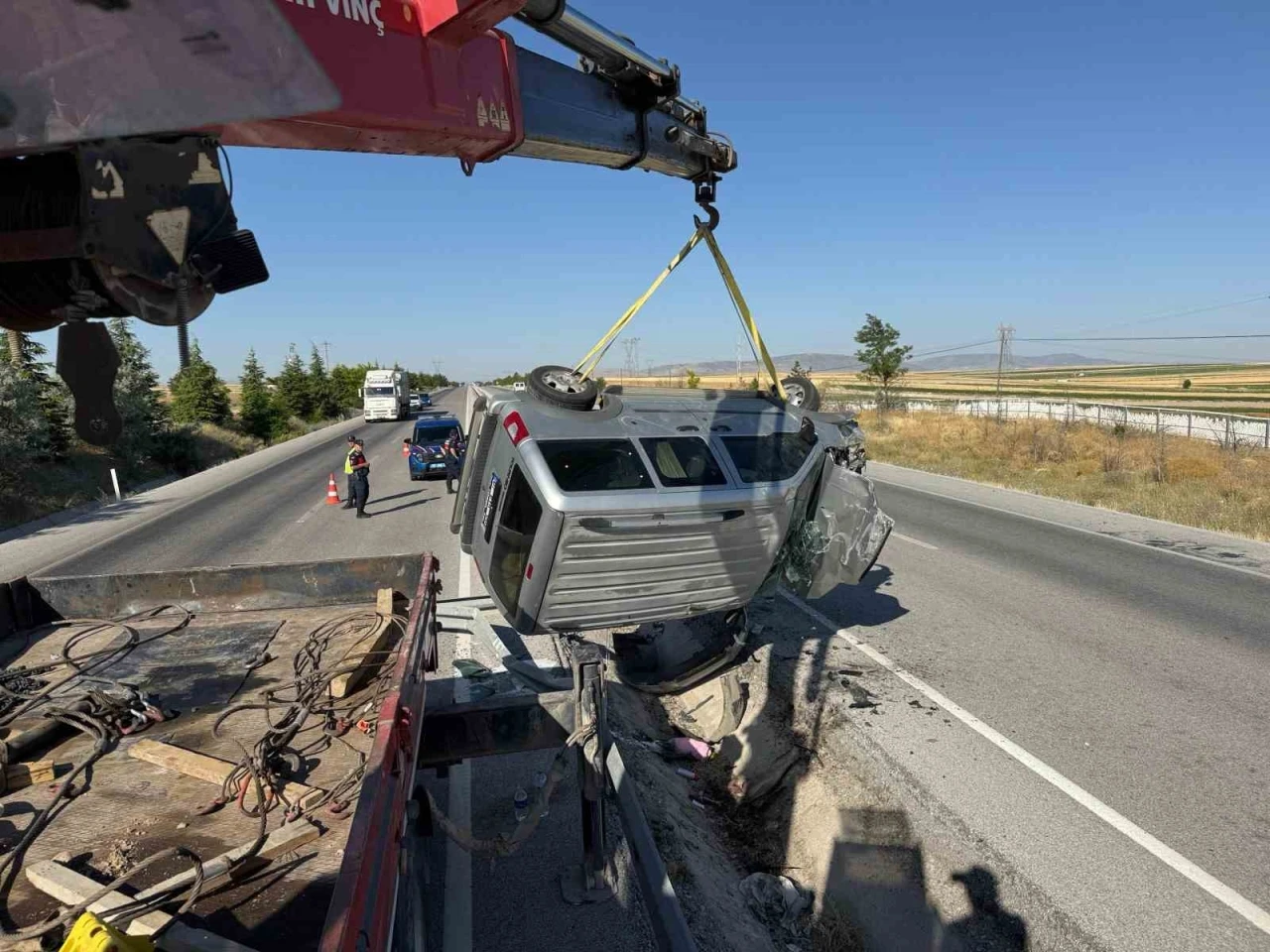 Afyonkarahisar’da kontrolden çıkarak orta refüje devrilen hafif ticari araçta 2 kişi yaralandı.