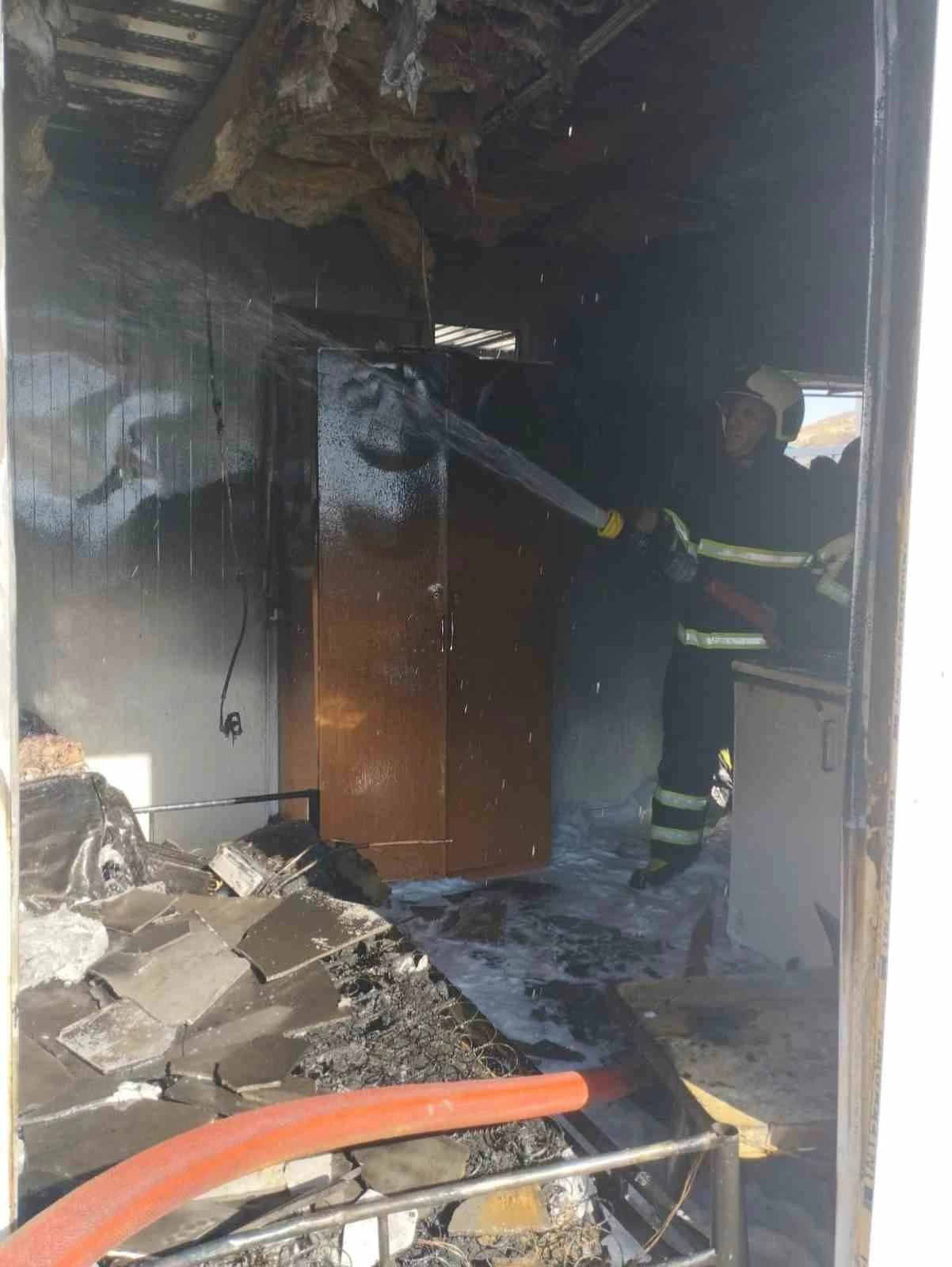 Hatay’da çıkan yangında konteyner kullanılmaz hale geldi.