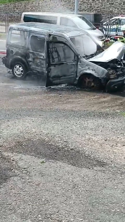 Rize’de seyir halindeki hafif ticari araç bir anda alev aldı. İtfaiye ekiplerince yangın söndürülürken, araç ise kullanılamaz hale geldi.