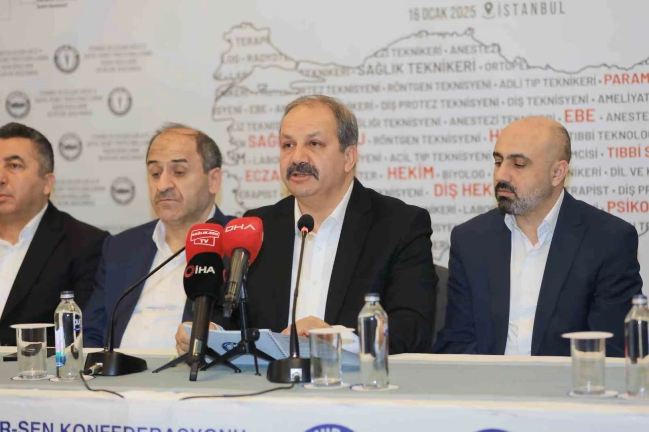Sağlık-Sen Genel Başkanı Mahmut Faruk Doğan, “Yapılan devasa yatırımlar, sağlık sistemimizde büyük değişim ve gelişimi beraberinde getirmiş, sağlık alt yapımızı dünya sıralamasında üst lige taşımıştır. Bugün burada toplanmamızın nedeni sağlık çalışanlarımızın emeğini yeterince görememiş olmalarıdır. İstanbul’da sağlık ve sosyal hizmet profesyonellerinin ekonomik durumları 2020’den bu yana dramatik bir şekilde geriye gitmektedir. İhtiyaç kredisi çekenlerin oranı 2020’de yüzde 36,4 iken, 2024’te yüzde 57,25’e yükselmiştir. Kredi kartı takibine alınma oranı yüzde 16,5’ten yüzde 18’e çıkmıştır. Sağlık ve sosyal hizmet profesyonellerinin yüzde 75,2’si geçtiğimiz yıllara göre ekonomilerinin geriye gittiğini bildirmişlerdir. Bu veriler, çalışanların geçim sıkıntısı nedeniyle borçlanmaya ve ekonomik anlamda daha fazla zorlanmaya başladığını net bir şekilde ortaya koymaktadır” ifadelerini kullandı. “Barınma masrafları, çalışanların maaşlarının büyük bir kısmını tüketiyor”