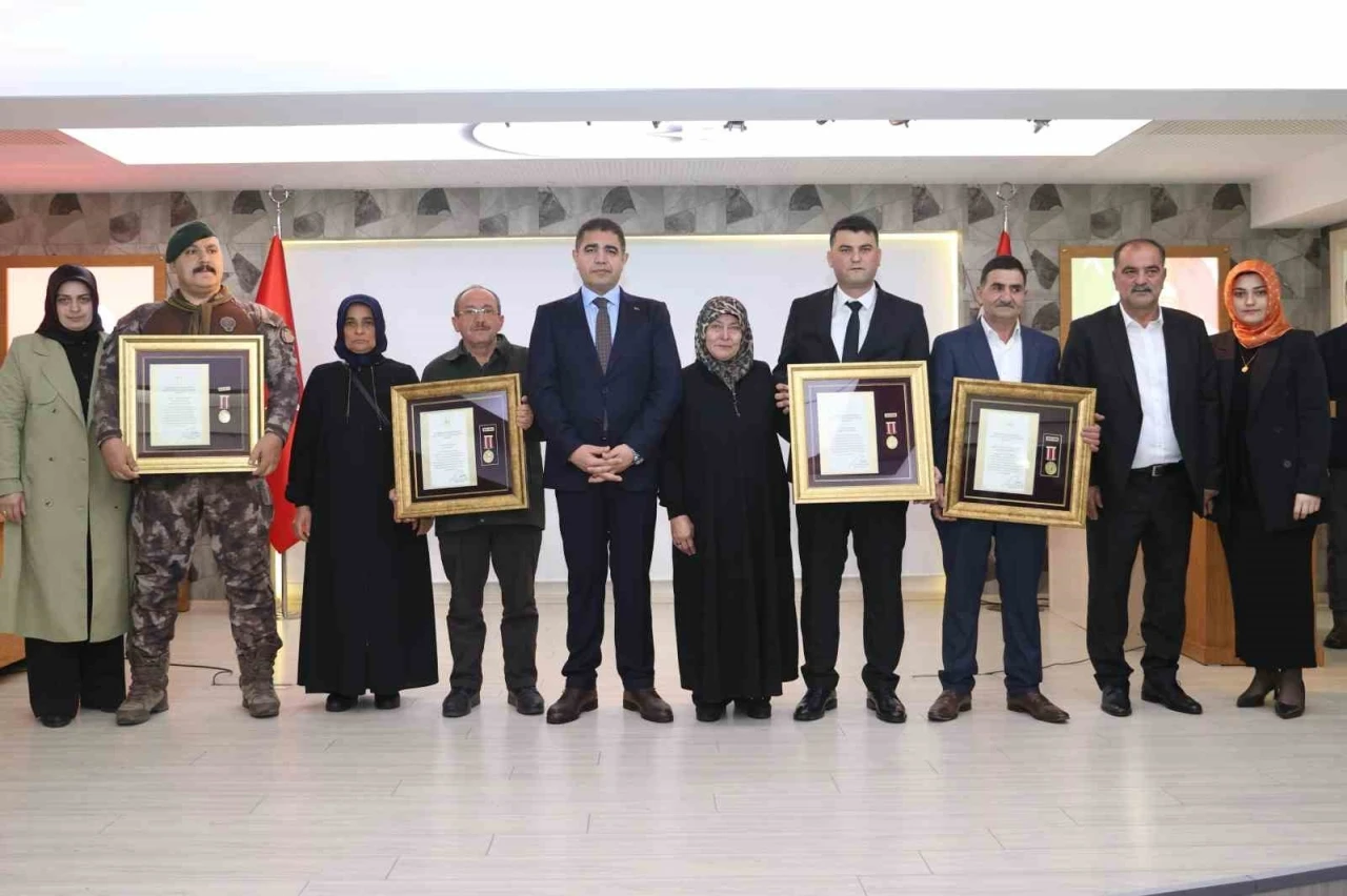 Akçakoca Gazi Konferans salonunda düzenlenen törende, Şehit Piyade Uzman Çavuş Serhat Bal ve Şehit Köy Korucusu Nurettin Dursun’un ailelerine, Gazi Polis Memuru Kenan Şengül ve Gazi Uzman Çavuş Onur Kurt’a Devlet Övünç Madalyaları ve Beratları, Düzce Valisi Selçuk Aslan tarafından tevcih edildi.