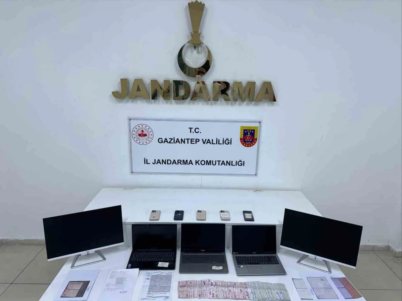 Yapılan tespitin ardından belirlenen 2 adrese eş zamanlı operasyon düzenleyen jandarma ekipleri, suç örgütü lideri E.K. ile örgüt üyeleri K.K ve Ö.K’yi gözaltına aldı. Şüphelilerin adreslerinde yapılan aramalarda 8 adet farklı araçlara ait sahte tescil belgesi, 5 adet cep telefonu ve sim kartı, 5 adet dizüstü bilgisayar, 2 adet sahte belge ve 14 bin 700 TL suç geliri para ele geçirildi.