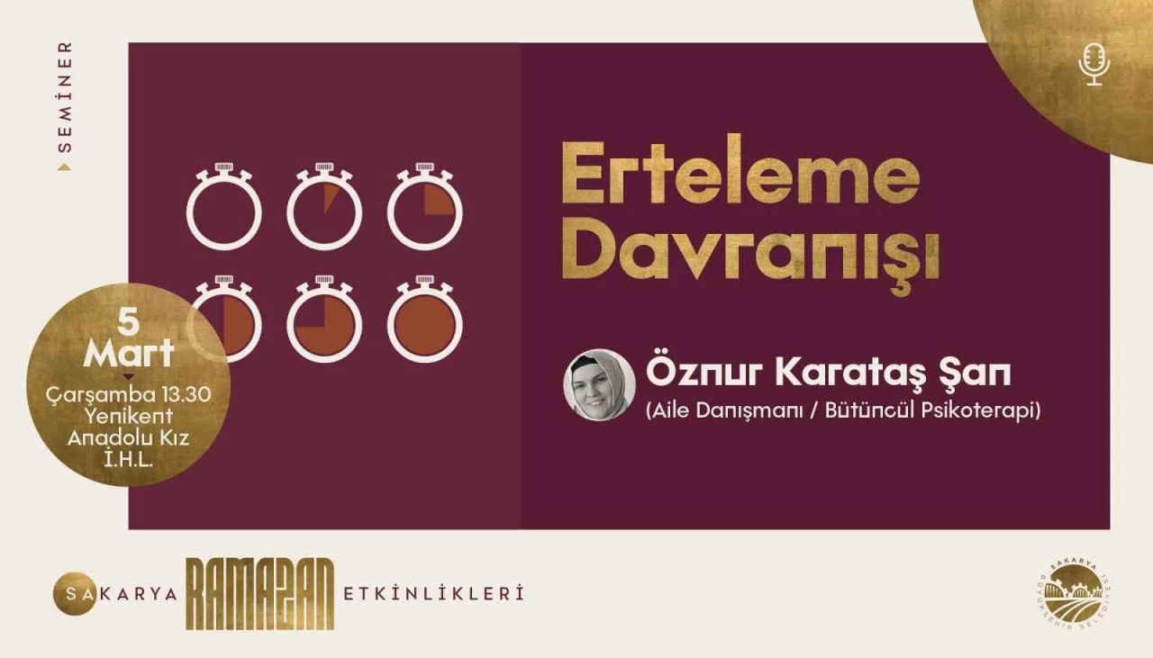 Sakarya Büyükşehir Belediyesi Ramazan Kültür Takvimi "Erteleme Davranışı" semineri ve mini konser ile devam edecek.