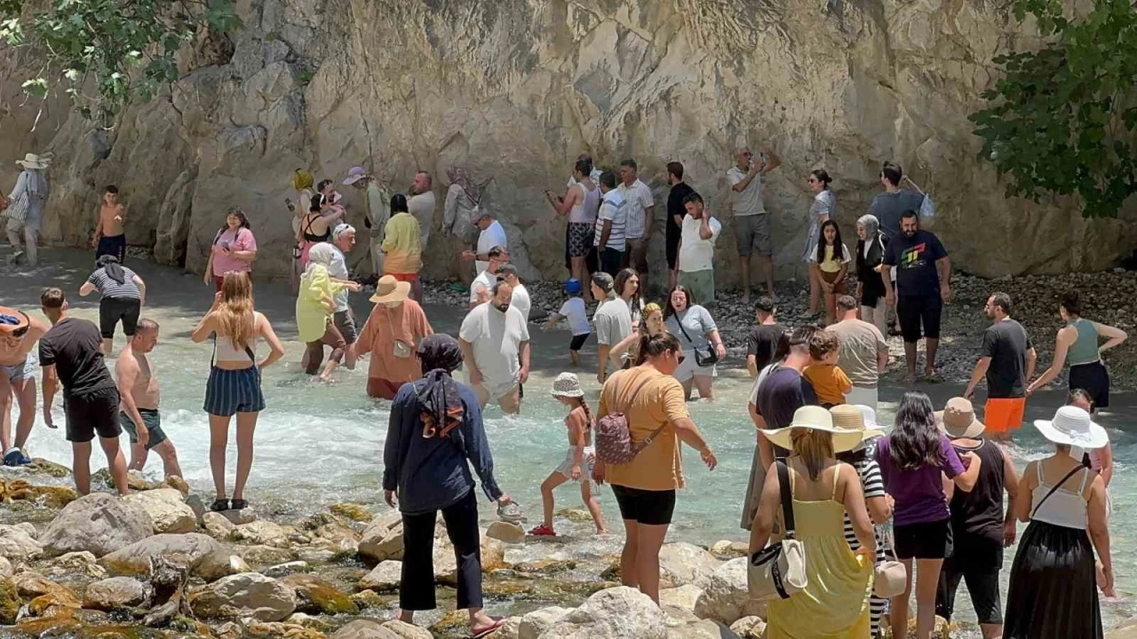 Kayadibi Mahallesi’ndeki Seydikemer Belediyesi tarafından işletilen kanyona girmek isteyen tatilciler uzun kuyruklar oluşturdu. Hava sıcaklığının 36 derece ölçüldüğü ilçede bazı ziyaretçiler kanyonun soğuk suyunda serinledi, bazı tatilciler ise Karaçay Deresi’nde rafting yaparak adrenalin dolu anlar yaşadı.