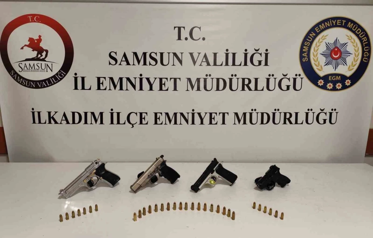 İlkadım İlçe Emniyet Müdürlüğü Suç Önleme ve Soruşturma Büro Amirliği ekiplerince yürütülen saha çalışmaları çerçevesinde, 2 şüphelinin üzerinde ve ikametlerinde arama yapıldı. Yapılan aramalarda, 2 adet ruhsatsız tabanca, 2 adet kuru sıkı tabanca ve 31 adet tabanca fişeği ele geçirildi.