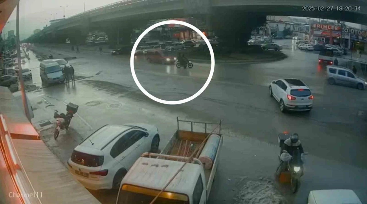 Samsun’da hafif ticari araçla çarpışan motosikletteki 2 kişinin yaralandığı kaza güvenlik kamerasına yansıdı.