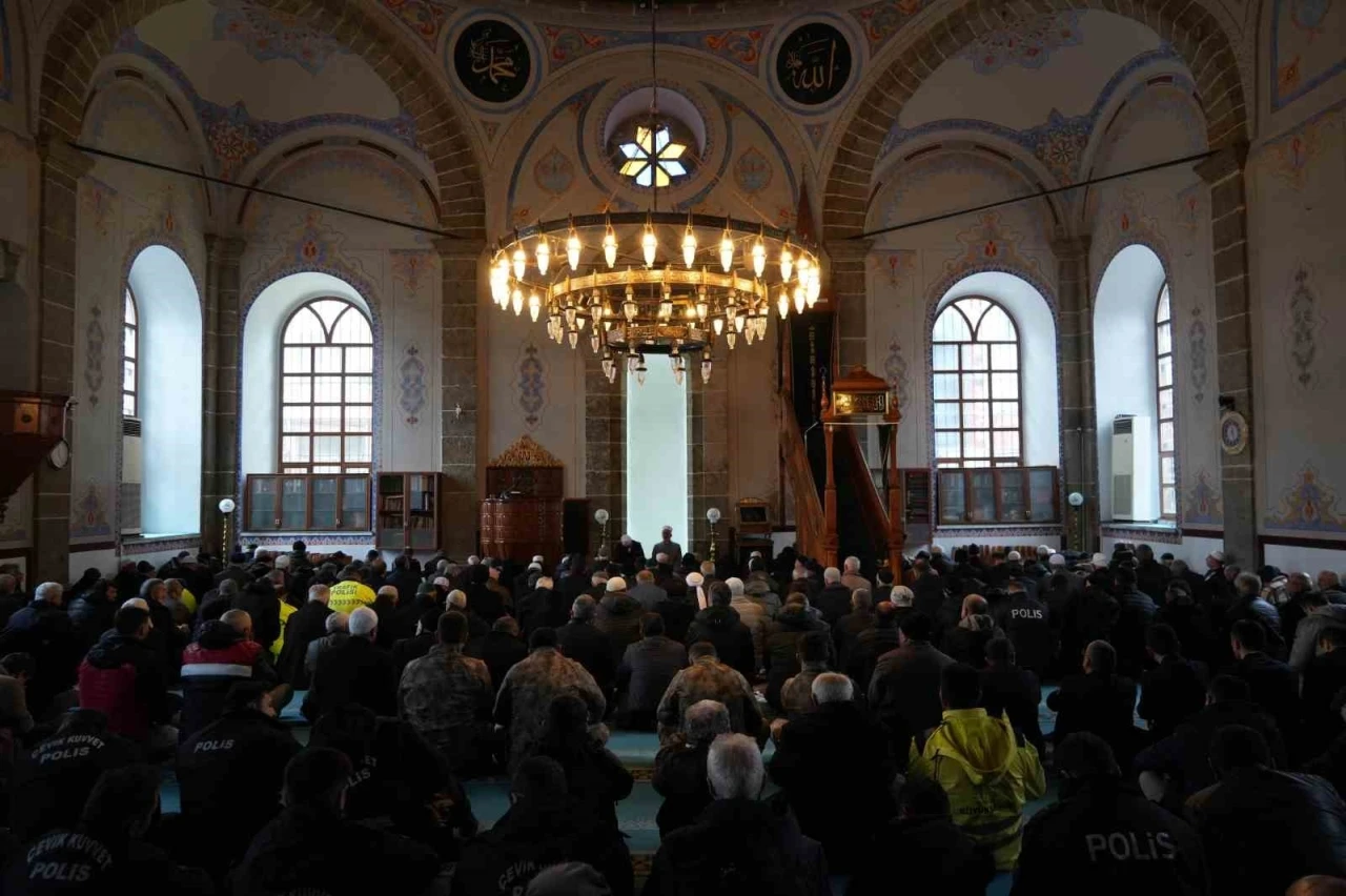 Emniyet Teşkilatı’nın 180. kuruluş yıldönümü münasebetiyle Samsun Büyük Cami’de cuma namazı öncesinde şehitler için Mevlid-i Şerif merasimi düzenlendi. Camiye gelen cemaate, polis memurları tarafından gül suyu ve kek hediye edildi.