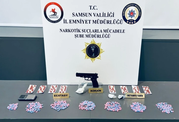 Edinilen bilgiye göre, Samsun Cumhuriyet Başsavcılığı koordinesinde uyuşturucu ile mücadele kapsamında çalışma yapan Samsun Emniyet Müdürlüğü Narkotik Suçlarla Mücadele Şube Müdürlüğü ekipleri, elde edilen bilgiler doğrultusunda uyuşturucu madde ticareti yaptığı tespit edilen U.D. (21) isimli şahısta ve İlkadım ilçesi Yenidoğan Mahallesi’ndeki ikametinde arama yaptı. Yapılan aramada, 652 adet extacy hap, 42,78 gram kokain, 114 adet sentetik ecza, 0,98 gram metamfetamin, 1 adet hassas terazi, 1 adet kuru sıkı tabanca ve 15 adet tabanca fişeği ele geçirdi. Olayla ilgili U.D. gözaltına alındı. Soruşturma devam ediyor.