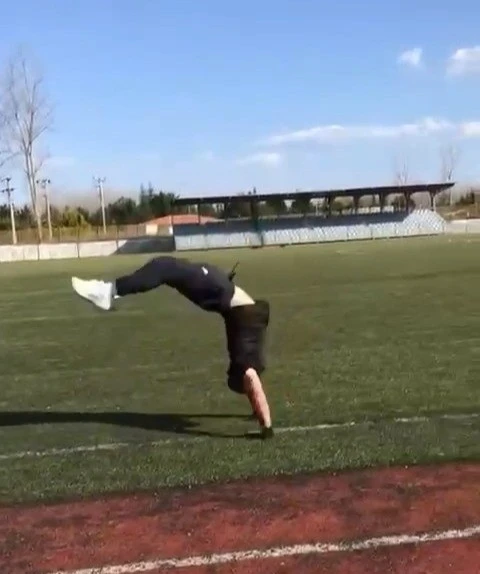 Samsun’da yaşayan ve geri takla rekoruyla Guinness’e giren Osman Ismak’ın (34) deniz kenarındaki takla gösterisi, Instagram’ın global hesabında paylaşıldı. Video 100 milyondan fazla izlenerek büyük ilgi gördü.
