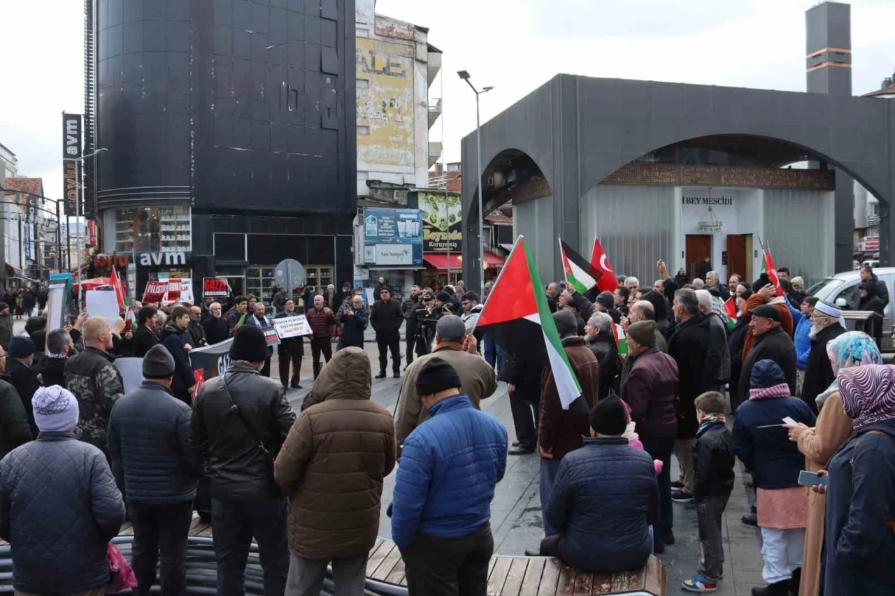 Cuma namazı sonrası bir araya gelen Samsunlular, İsrail’in Filistin’e yönelik uyguladığı soykırım ile ABD’nin "sürgün" planına tepki göstererek "Gazze boşaltılamaz" mesajı verdi.