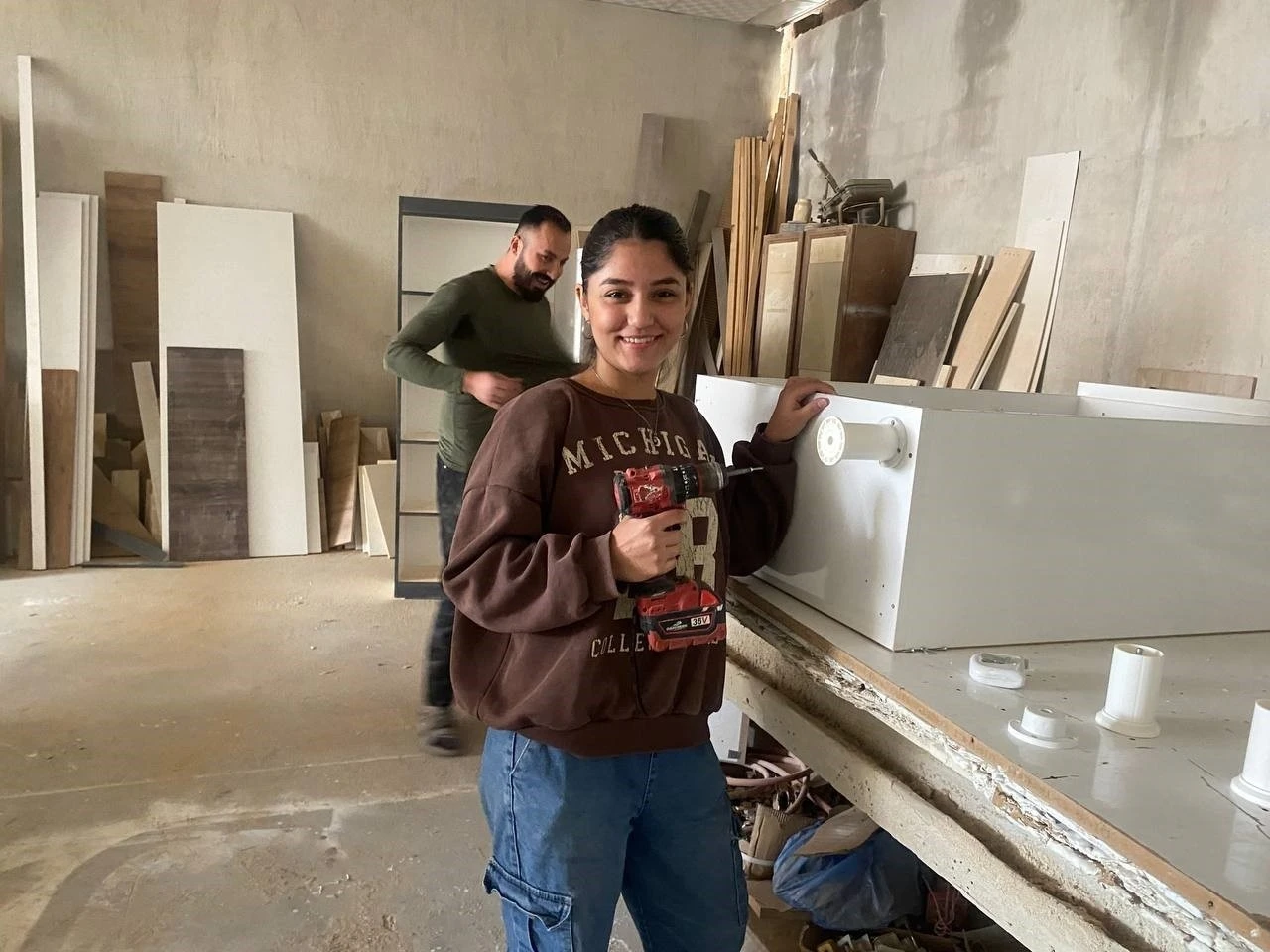 Bu mesleği seçmesindeki büyük payın annesi olduğunu söyleyen Melek Okuşlu, "Bu işe küçüklüğümden beri ilgimi çektiği için yapmak istedim. Yaşım şimdi tuttuğu için annem ve babam bana bu konuda çok iyi örnek oluyordu. Mesleki eğitime geçiş yaptı. Bu işleri ileride ben devralmak istiyorum. Şimdi daha yeni yeni altyapım oluştu. İleride daha çok çalışıp atölyemizi büyütmek istiyorum. Devletimizin de verdiği katkı sayesinde ve ekstradan aldığım 6 bin Türk Lirası sayesinde geleceğimin temelini çok güzel atıyorum birikim yapıyorum. Bunun içinde devletimize çok teşekkür ediyorum. Benim bu mesleğe yönelmemde annem etkili oldu çünkü 21 yıldır annemle babam beraber çalışıyor. Annem yapıyorsa ben neden yapamamayım deyip mesleğe atıldım bu işi kadını erkeği yoktur" dedi. Kızlarının seçmiş olduğu meslekte her daim yanında olduklarını söyleyen anne Selver Okuşlu, "Biz eşimle beraber 21 yıl oldu mobilya sektöründe beraber çalıştığımız için kızımız melekte bizden esinlenerek bu bölüme geçmeyi tercih etti. Bizde ona anne ve babası olarak tüm desteklerimizi sunarak bu meslekte büyümesini sağlayacağız" diye konuştu. Melek’in küçüklüğünden bu yana bu mesleğe merakının olduğunu söyleyen ustası Osman Akkaş, "Melek sürekli okuldan geldiği zaman atölyeye uğruyor bizleri izliyordu daha sonra mesleki eğitime geçmeyi düşündüğünü söyledi. Bizde bunu destekledik şuan bu işte baya başarılı başka çıraklarımızda var ama içlerinden en iyisinin Melek olduğunu söyleyebilirim. Biz bu kadar beklemiyorduk beklediğimizden daha iyi çıktı" dedi.