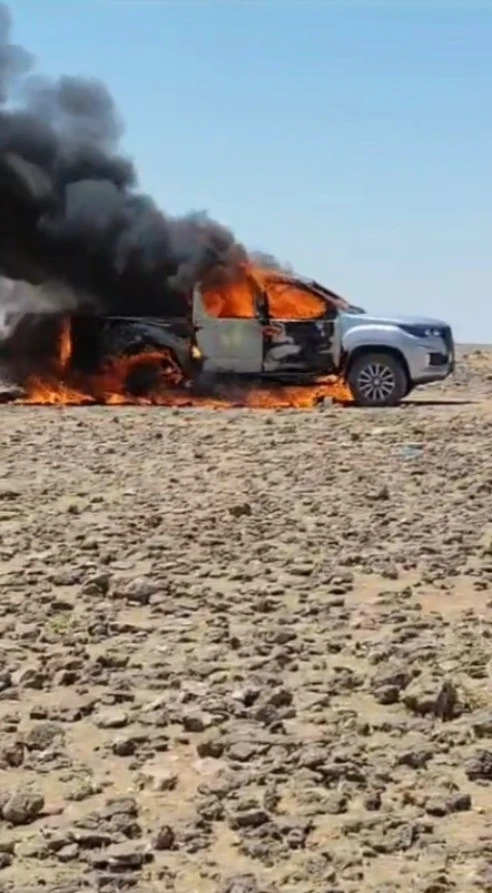 Şanlıurfa’nın Ceylanpınar ilçesinde seyir halindeki bir kamyonet, alev topuna döndü. Araç kullanılamaz hale geldi.