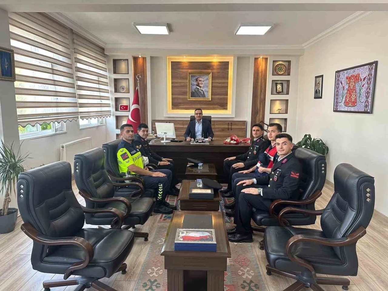 Sarıgöl Kaymakamı Halil Dalak, Jandarma Teşkilatının 186. kuruluş yıl dönümü dolayısıyla İlçe Jandarma Komutanı ve jandarma ekibini makamında ağırladı.