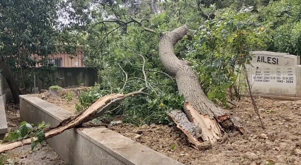 İstanbul Sarıyer’de yaş bir ağaç ortasından kırılarak mezarlıkların üzerine devrildi. Olay esnada mezarlıkta kimsenin olmaması muhtemel facianın önüne geçti.