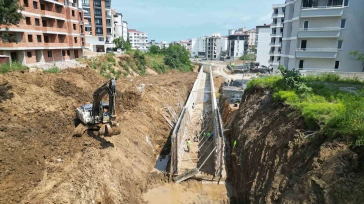 Samsun Büyükşehir Belediyesi Su ve Kanalizasyon İdaresi (SASKİ) Genel Müdürlüğü, 484 metre uzunluğundaki Sazak Deresi’nde taşkın riskini azaltacak ıslah çalışmasını sürdürüyor.