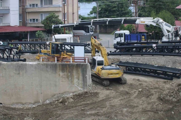 Trabzon’da yapımı tamamlanan 50 metre uzunluğunda 3 metre genişliğinde çelikten olan yeni köprü tırlarla konvoy eşliğinde Devrek’e getirildi. Devrek’e ulaşan köprü parçaları montajının yapılacağı temellerin yanına getirilerek vinçler yardımıyla tırlardan indirildi. Köprü için temel ve ayak montaj noktalarının tamamlanmasının ardından getirilen köprü parçaları için diğer çalışmalar başlatıldı. Trabzon’dan gelen köprünü yerleştirilme işleminde kullanılacak olan vinçler için Devrek Çayı’na zemin yapımına başlandı. Zemin yapımının tamamlanmasıyla birlikte Devrek Çayı’na inecek olan vinçlerin parçaları birleştirerek köprünün montajını hafta sonuna kadar tamamlaması bekleniyor.