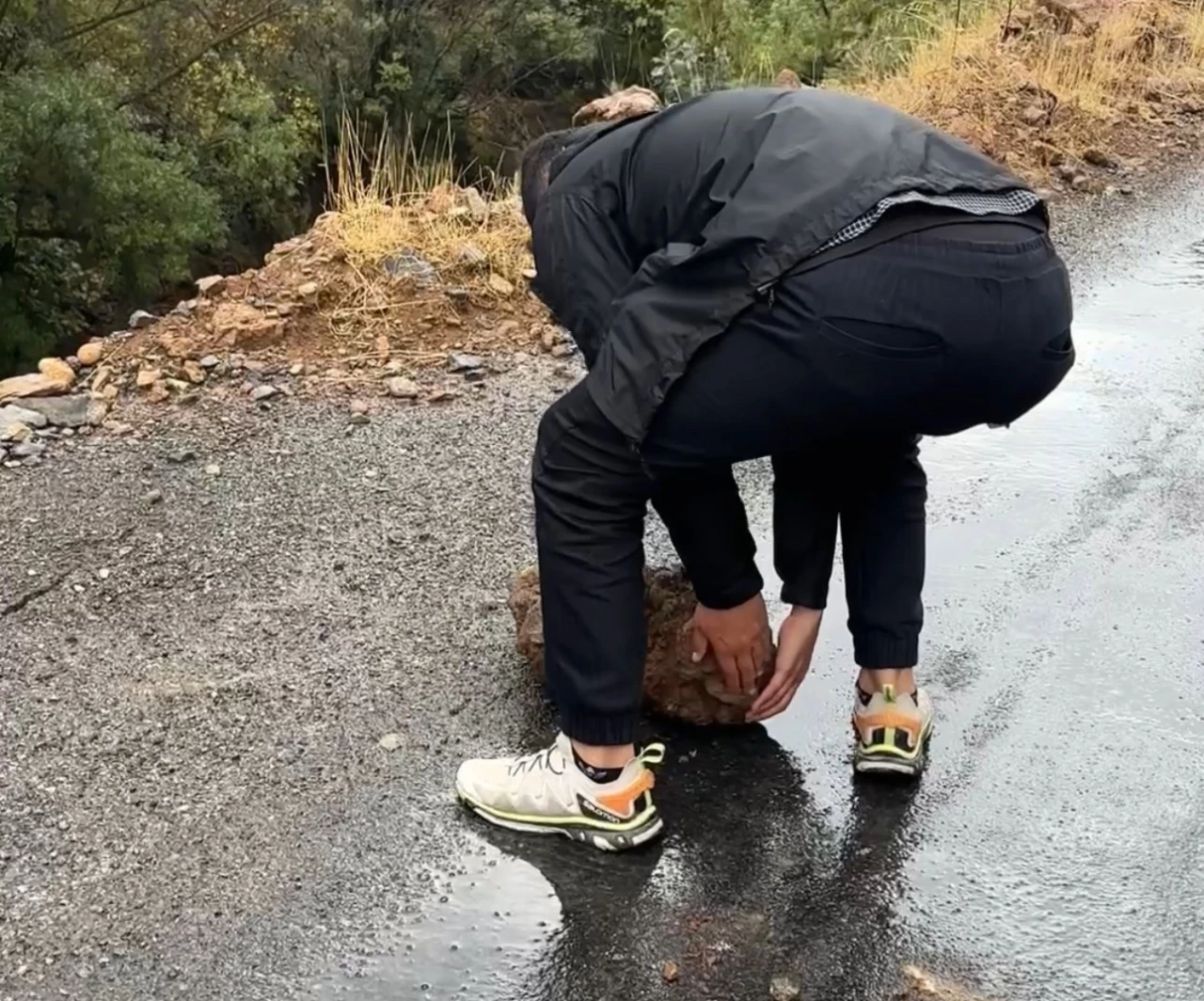 Dün başlayan yoğun yağışlar hayatı olumsuz yönde etkilerken, bölgede bir çok noktada kar yağışı da etkili oldu. Şemdinli-Derecik karayolunda etkili olan yağış etkisiyle dağlardan çok sayıda kaya parçası yola düştü. Gezi ve okul programları için Derecik ilçesine giden Yüksekova Ekoloji Kültürel ve Dağcılık Spor Kulübün Başkanı Suat Öztekin, araçtan inerek kaya parçaları tek tek kaldırıp yol kenarına bıraktı.