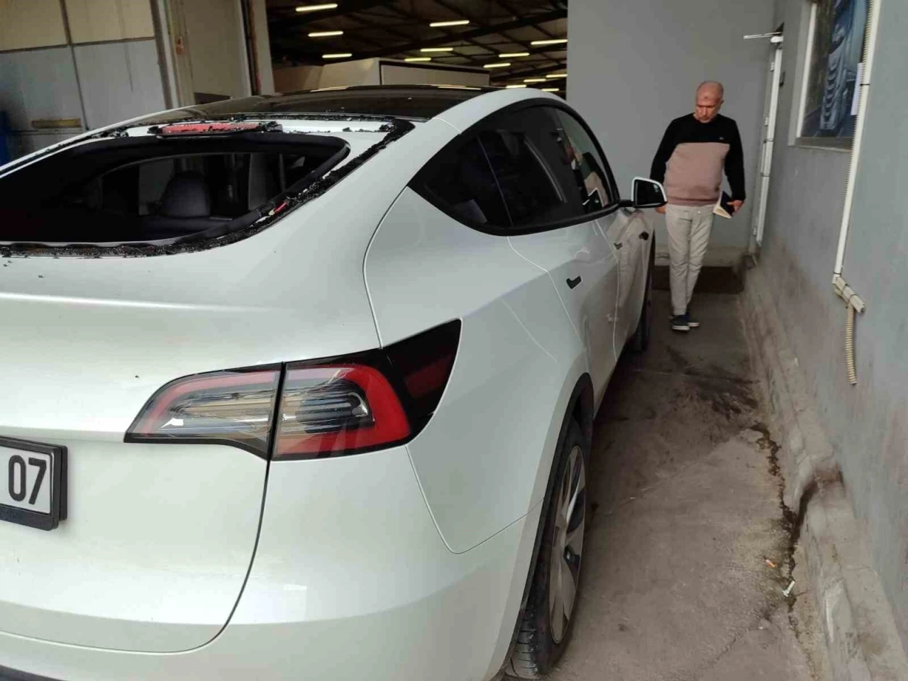 Antalya’nın Serik ilçesinde etkili olan dolu ve sağanak yağış, seralara ve araçlara zarar verdi. Dolu yağışı sırasında Tesla marka bir otomobilin camları kırıldı.