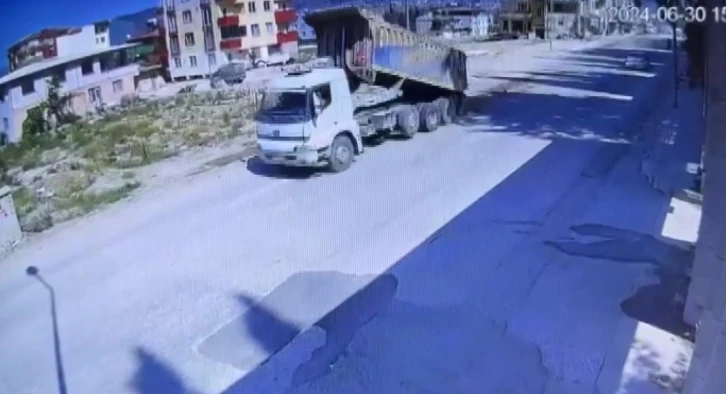 Hatay’da bir hafriyat kamyonu, seyir halindeyken damperini 200 metre boyunca yola toprak döktü. Kamyonun yola toprak döktüğü anlar güvenlik kamerasına yansırken vatandaşlar duruma tepki gösterdi.