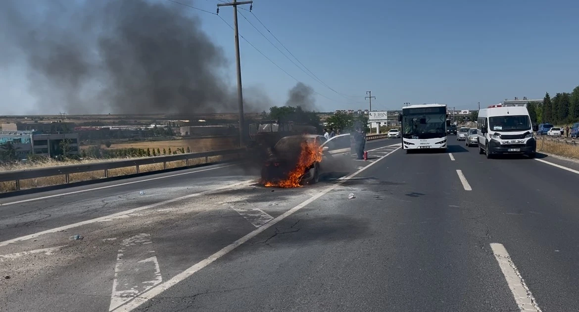 Edinilen bilgilere göre, Çerkezköy-Çorlu yolu üzerinde seyir halinde olan 59 AHZ 355 plakalı bir araç, henüz öğrenilemeyen bir sebeple alev aldı. Araçtan duman yükseldiğini fark eden sürücü, otomobili yol kenarına çekerek hemen araçtakilerle birlikte tahliye oldu. Alevler kısa sürede aracı sararken, olay yerine yakın bir su tankeri ile çevredeki vatandaşlar yangına müdahale etti. Jandarma ekipleri yol üzerinde geniş güvenlik önlemleri alırken, çevredeki vatandaşların da desteğiyle yangın söndürüldü. Olay yerine gelen itfaiye ekipleri soğutma çalışmalarını tamamlamasının ardından, yangın sona erdi. Araçta ciddi maddi hasar oluşurken, olayda yaralanan olmadığı bildirildi. Yangının çıkış nedeni yapılacak teknik inceleme sonrası netlik kazanacağı ifade edilirken, başlatılan inceleme sürüyor.