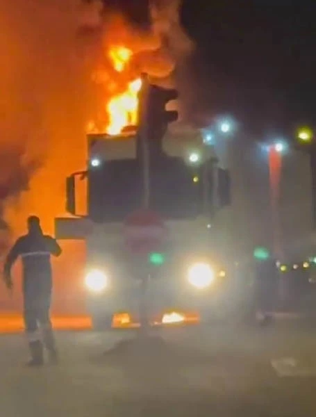 Adıyaman’da seyir halindeki bir tır alev alarak cayır cayır yandı.