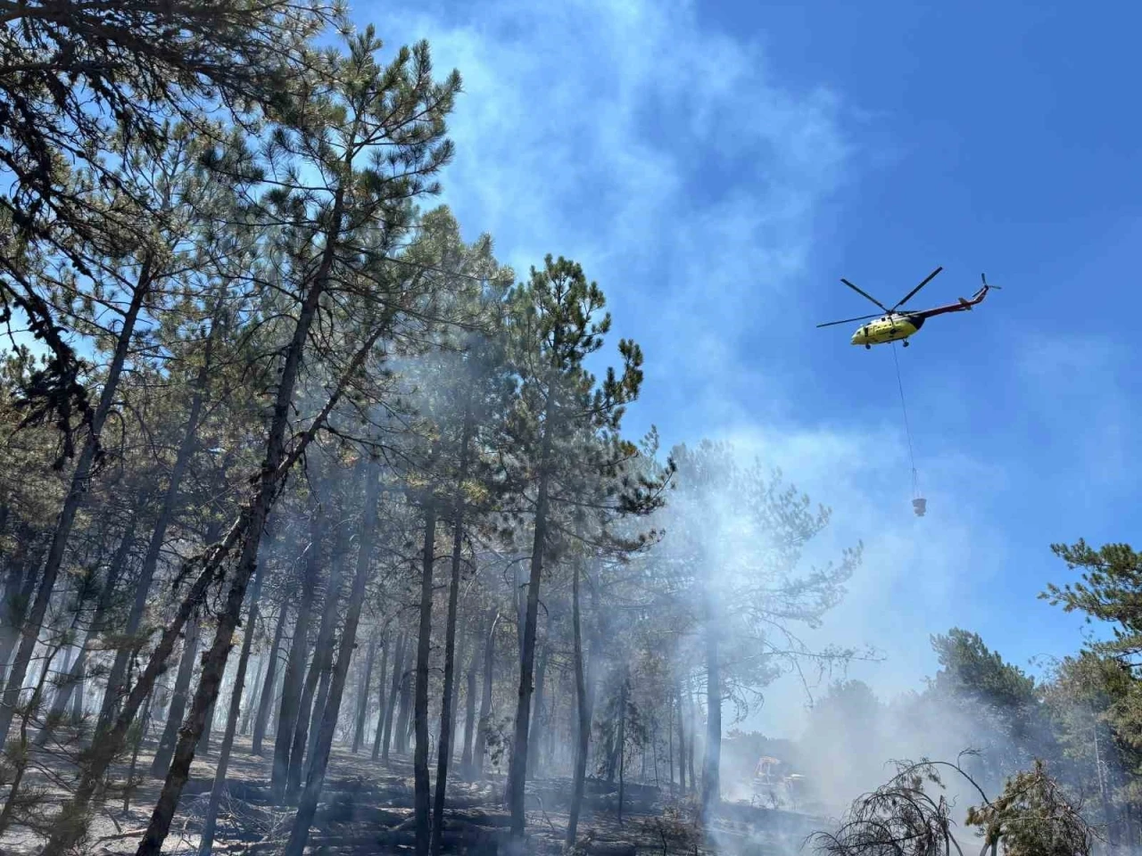 Eskişehir’in Seyitgazi ilçesinde çıkan orman yangını kontrol altına alınırken, soğutma çalışmaları devam ediyor.