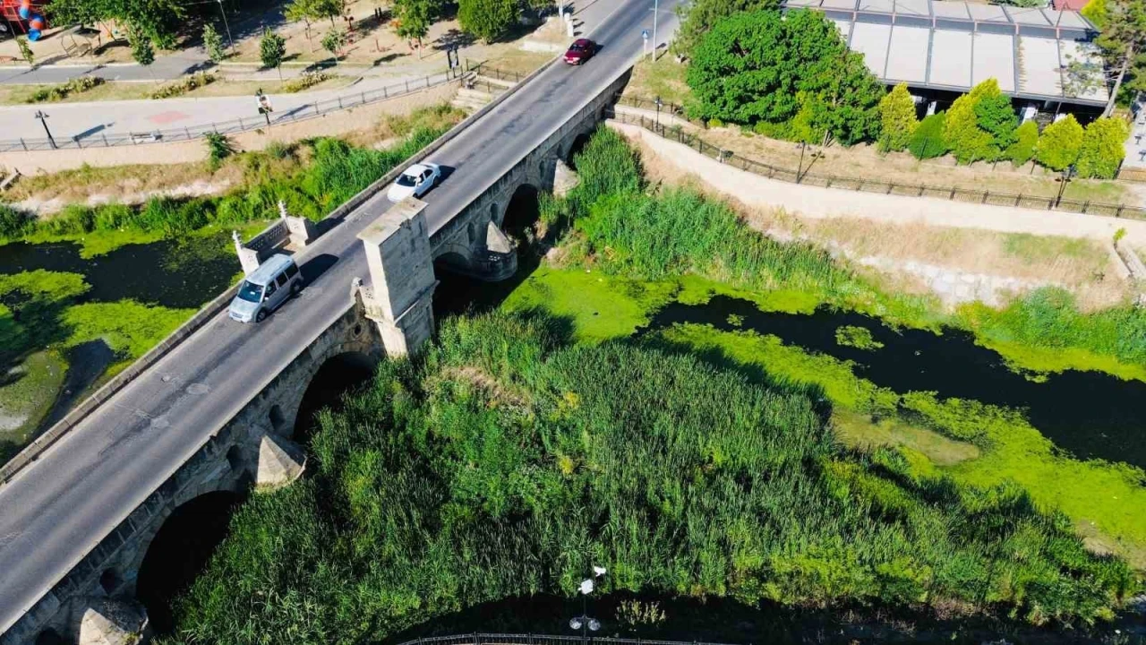 Su akışının yavaşladığı bölgelerde özellikle Babaeski Köprüsü çevresinde su yüzeyi yosun ve bitkilerle kaplanırken, azalan seviye nedeniyle suya atılan atıklar da görünür hale geldi.