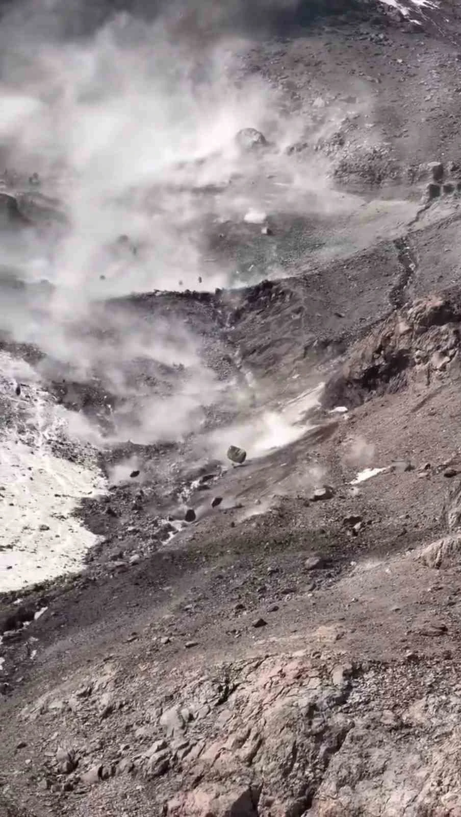Sıcak hava dalgası Ağrı Dağı’nda kaya düşmelerini tetikledi. Büyük gürültülerle yuvarlanan kayalar toz bulutları oluşturdu.