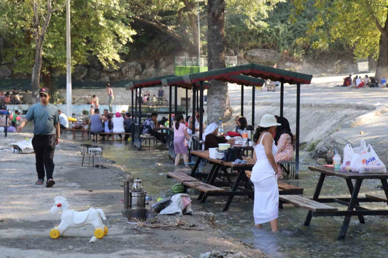 Kent merkezindeki bunaltıcı sıcaklardan kaçmak için mesire alanına geldiğini ifade eden Erhan Çelik, "Meteorolojiden bu hafta Çarşamba ve Perşembe günlerinin çok sıcak olacağını duydum. Kendimizi buraya artık. Buranın doğası, suyu hakikatten çok güzel. Hafta içi olmasına rağmen de gerçekten çok kalabalık, bu kadar kalabalık olacağını beklemiyordum. Herkes serinliyor, eğleniyor güzel. Kent merkezi buraya göre çok daha sıcak. Zaten sıcaktan kaçıp geliyor. Burada su var, çocuklarda bizlerde suya girerek serinliyoruz" şeklinde konuştu.