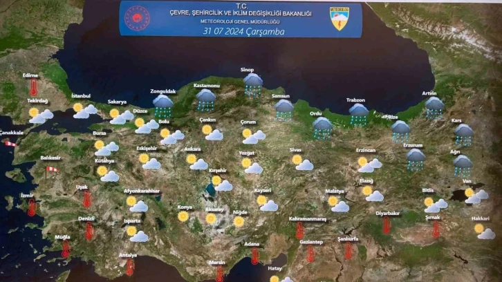 “Ankara’da önümüzdeki üç gün boyunca yağış beklemiyoruz. En yüksek sıcaklıklar 30-32 derece arasında ancak hafta sonunda Ankara’da sıcaklıklar 35 derecenin üzerine çıkacak. İstanbul’da sadece çarşamba günü için kuzey kesimlerinde kısa süreli bir yağış var. Yağış geçişi dışında İstanbul’da da yağış beklemiyoruz. İstanbul’daki en yüksek sıcaklıklar da yine 30-32 derece civarında seyredecek. İzmir’de yağış beklentimiz yok. Hava az bulutlu olacak. En yüksek sıcaklıklarda İzmir’de 35-36 derece civarında seyredecek.”