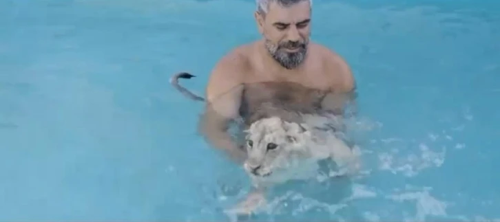 Duhok kentinde 6 aslanı evlatları gibi sevip oynayan Ahmet Akbey, bunaltıcı sıcakta aslanlarla havuz keyfi yaptı. Aslanları hem havuzda hem de üzerlerine hortum tutup serinletmeye çalışan Akbey, her gün onlara vakit ayırıp ilgilendiğini söyledi.