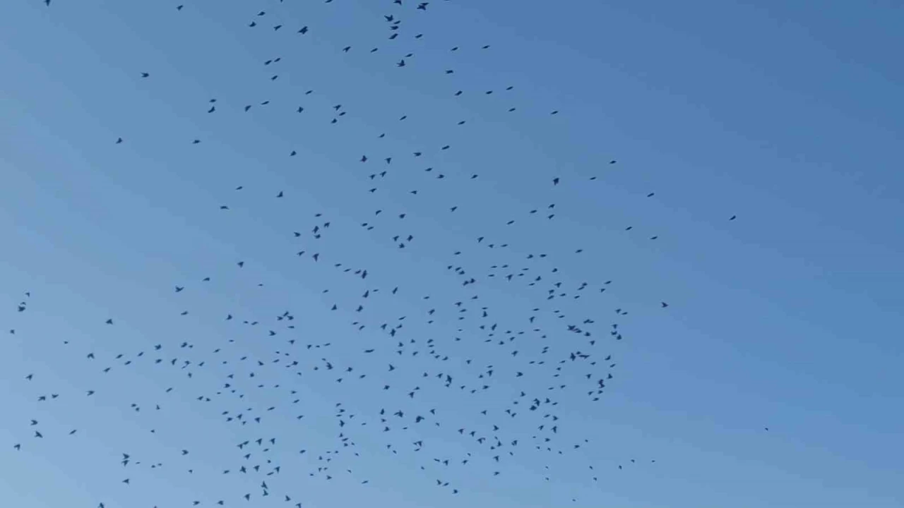 Van’da yüzlerce sığırcık kuşunun gökyüzündeki dansı, izleyenleri mest etti.