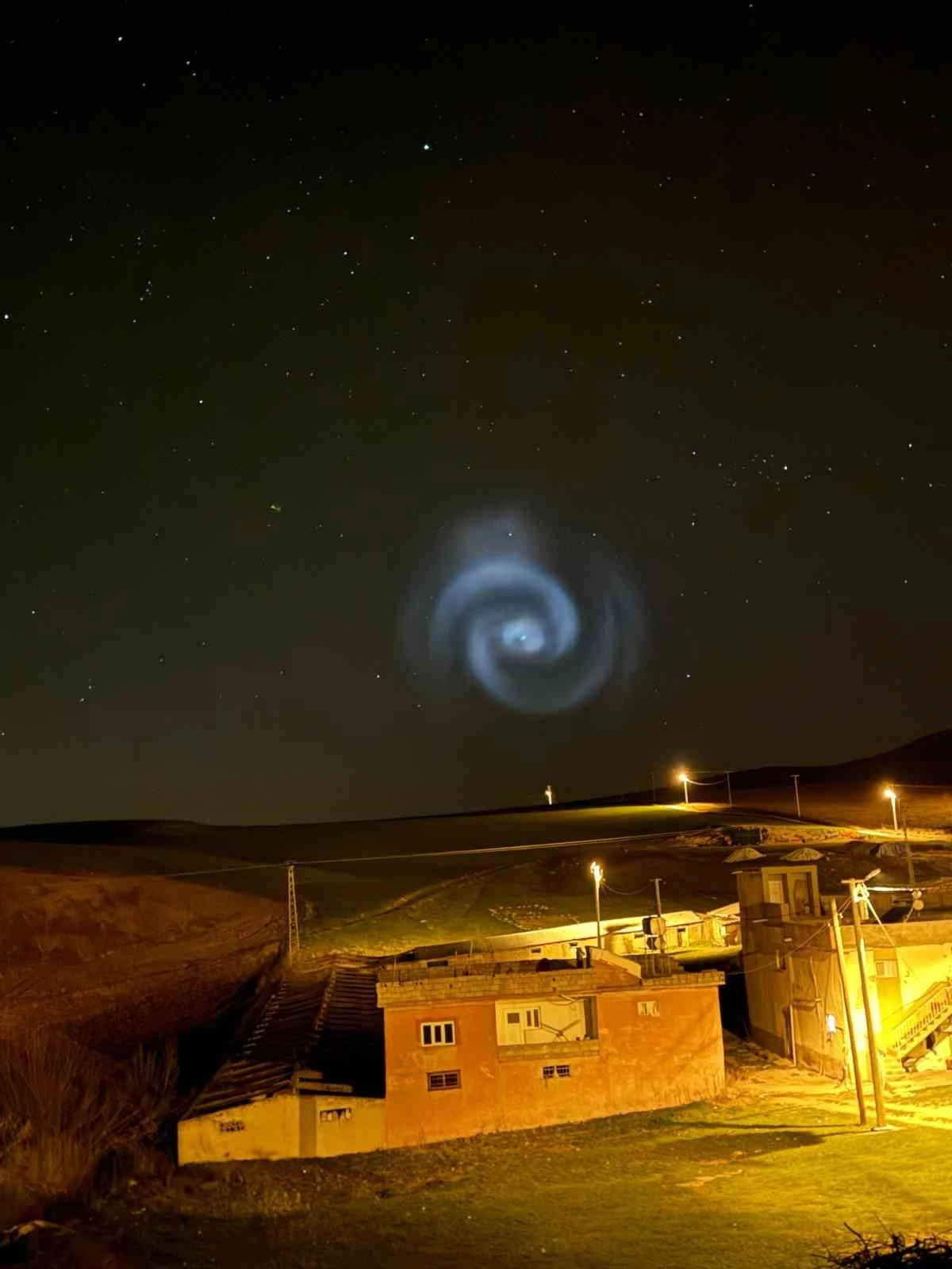 Türkiye’nin birçok bölgesinde görülen spiral cisim, Siirt’in Kurtalan ilçesine bağlı Gümüşsuyu köyünde de gözlemlendi.