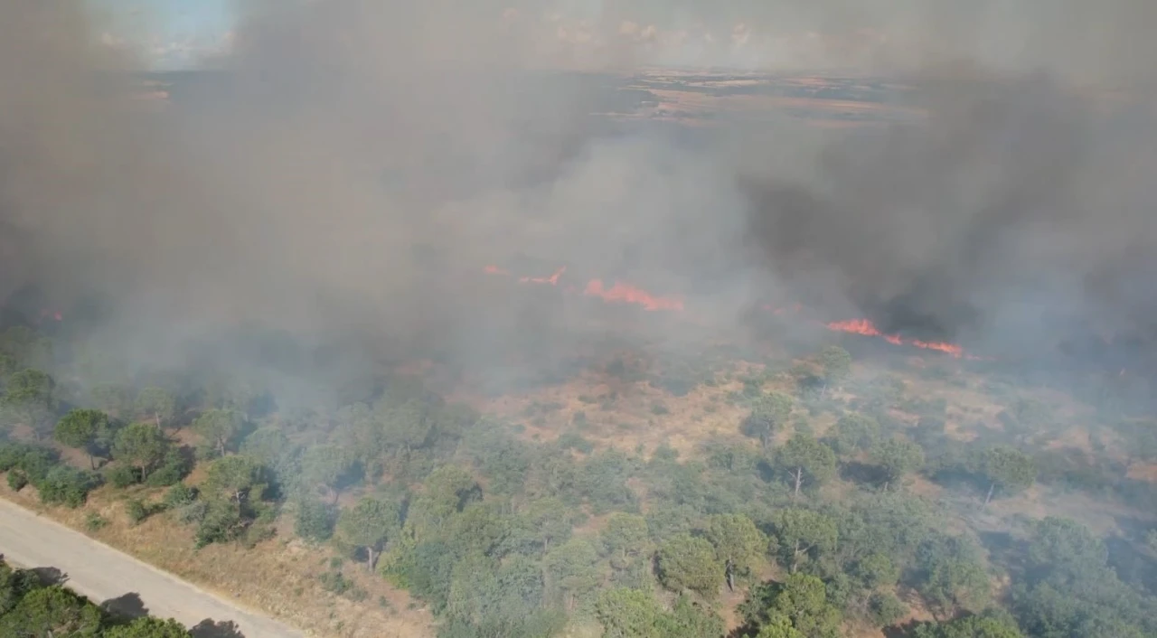Silivri’de tarım alanlarında çıkan rüzgarın etkisiyle büyüyerek ormanlık alana sıçrayan yangını söndürme çalışmaları havadan ve karadan sürüyor.