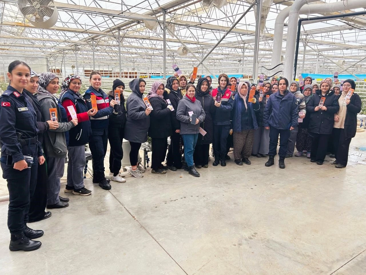 Kütahya İl Jandarma Komutanlığı Aile İçi Şiddetle Mücadele Çocuk Kısım Amirliği ve Simav İlçe Jandarma Komutanlığı tarafından, Simav ilçesi Çitgöl Beldesi çiçek serasında çalışan 54 kadına Kadın Acil Destek Uygulaması (KADES) hakkında bilgilendirme yapıldı.