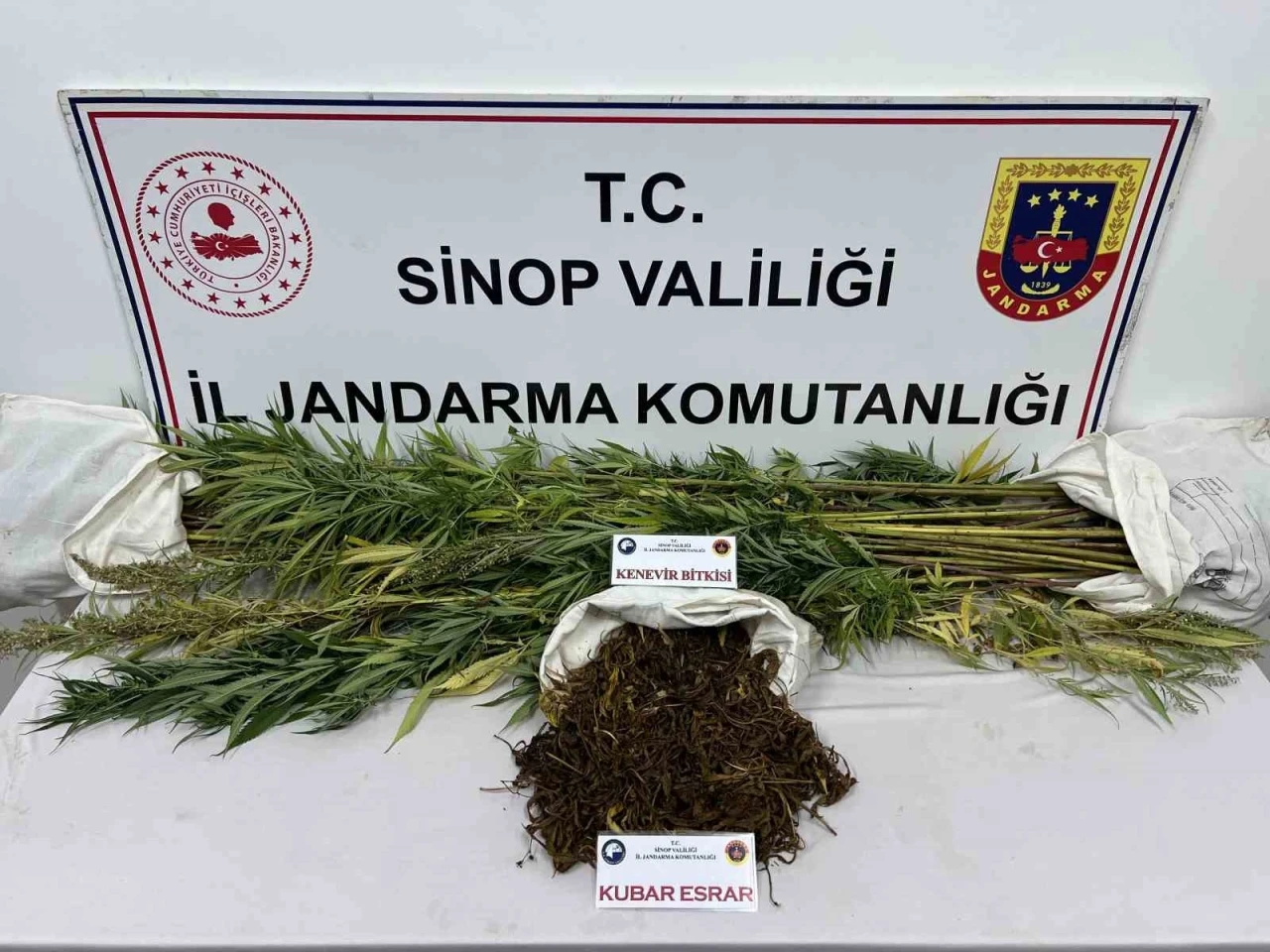 Sinop’ta jandarma ekiplerince uyuşturucu satıcılarına yönelik düzenlenen operasyonda 425 gram kubar esrar ve 56 kök kenevir bitkisi ele geçirildi, 1 kişi gözaltına alındı.