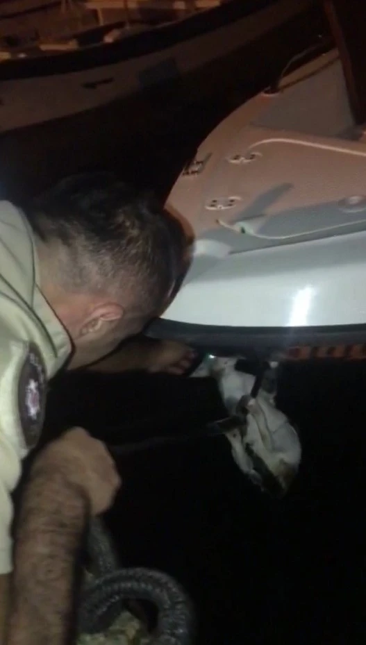 Kediyi kurtarma anları cep telefonu kamerası tarafından kaydedildi.