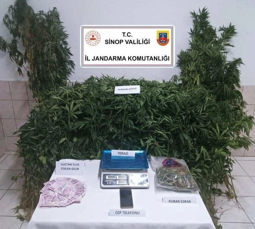 Sinop’un Durağan ilçesinde jandarma ekiplerince düzenlenen uyuşturucu operasyonunda çok sayıda kenevir bitkisi, esrar ve para ele geçirildi. Gözaltına alınan 2 şüpheliden biri tutuklandı.