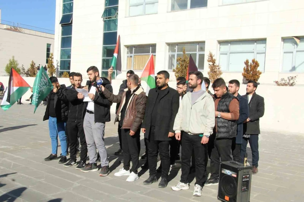Şırnak’ta bir grup üniversite öğrencisi, Filistin’de her gün katliamlar yapan İsrail’i protesto etti.