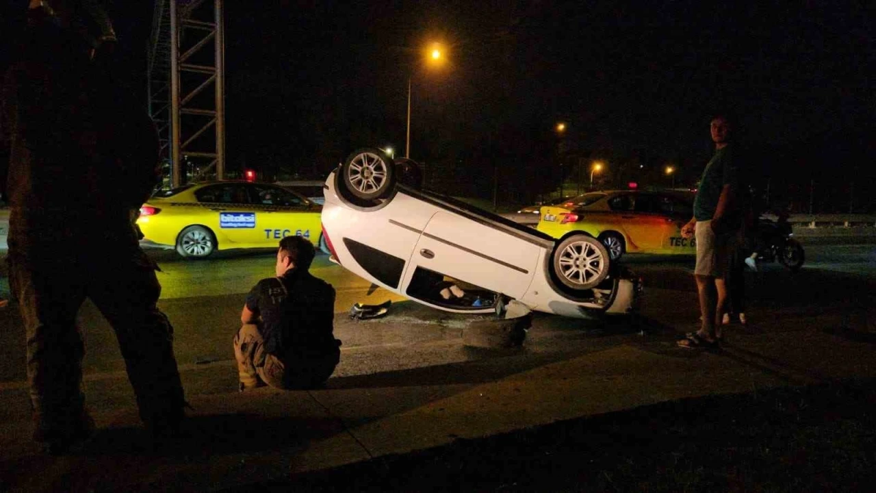 Şişli’de sürücüsünün alkollü olduğu iddia edilen araca arkadan başka bir araç çarparak kaçtı. Çarpmanın etkisiyle araç kaldırıma çarparak takla atarken, şans eseri sürücünün burnu bile kanamadı.