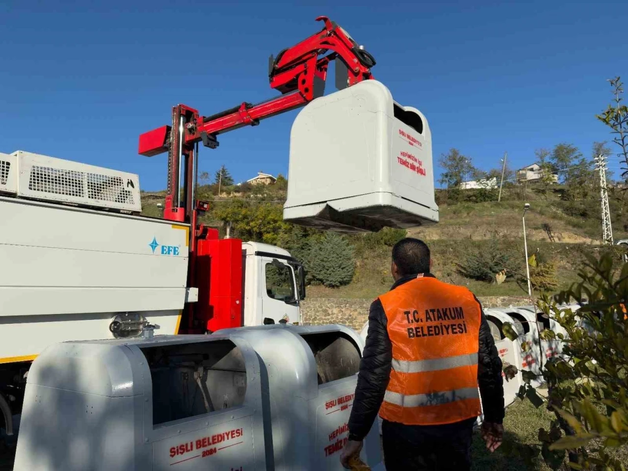 Belediyenin Temizlik İşleri Müdürü Mehmet Köse ise çöp konteyneri desteğinden duydukları memnuniyeti ifade ederek, “Atakum Belediyesi Temizlik İşleri Müdürlüğü olarak Şişli Belediye Başkanımız Resul Emrah Şahan’a ve ekibine yer üstü çöp konteyner desteklerinden dolayı Başkanımız Serhat Türkel adına çok teşekkür ederiz. Bu dayanışma ve çalışma azmiyle daha nezih, temiz ve yaşanabilir Atakum için Başkanımız Serhat Türkel liderliğinde çalışmalarımız tam hız devam etmektedir” diye konuştu.
