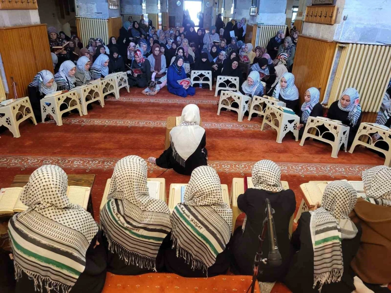 Sivas’ta Abdulvahhabi Gazi Yatılı Hafızlık Kız Kur’an Kursunda hafızlık eğitimi gören 30 öğrenci, İsrail’in saldırıları sonucu hayatını kaybeden Filistinliler için hatim programı düzenledi.