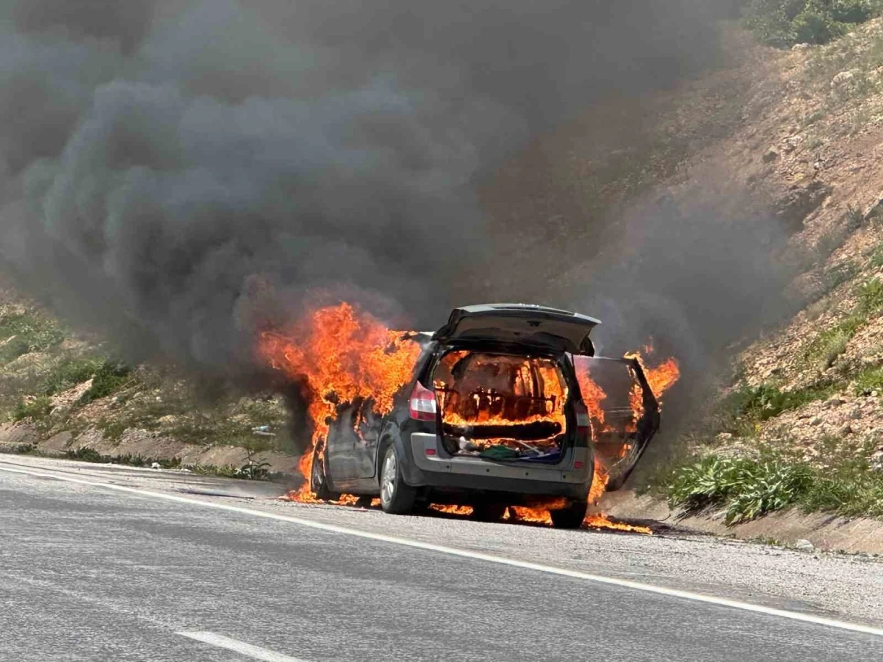 Sivas’ta seyir halindeyken alev alan otomobil kullanılamaz hale geldi. Araçta bulunan 4 kişi son anda kurtuldu.